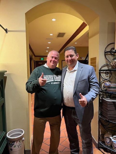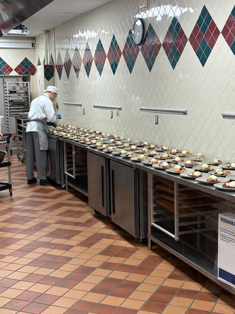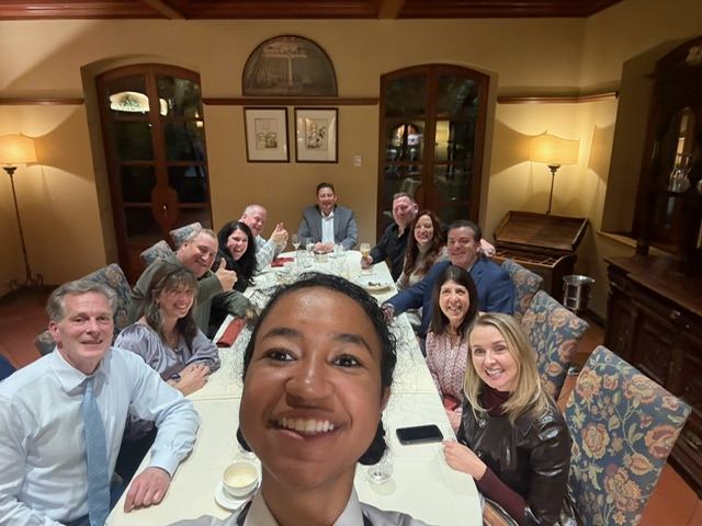 Dinner was at the student-run Italian restaurant, Caterina de’ Medici, inside the Colavita Center. The way it works: students spend half the semester in the kitchen, half in the “front of the house.” We showed up on their second night of service after the swap—and you’d never have guessed. Our server Cyan (maybe a little nervous) was sharp, attentive, friendly, even joined our table banter — and yes, John had been one of her professors. The four-course dinner, paired wines, and laughter stretched into the night. Truly one for the memory book.