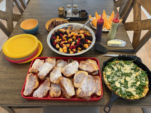 We also squeezed in some mountain hiking (and yes—turns out I’m maybe in better shape than I thought), a few wineries, and a brunch I wanted to be memorable. That brunch included a butternut squash frittata, French toast with mixed-berry compote, and the star: Italian pistachio crema. In Italy this nutty green cream often lives inside a cornetto (Italian croissant). My croissant skills aren’t quite there yet, so topping the French toast was the move. Some sausage and fruit rounded it out perfectly.